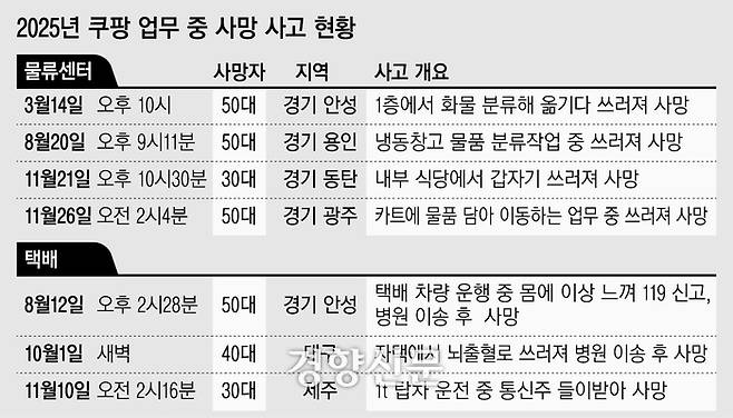 닷새 사이 물류센터서 노동자 2명 사망···쿠팡 ‘책임 회피’ 언제까지