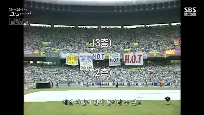 "기싸움에서 제일 대표적인건 3층을 얼마나 채우냐 예요. 3층이 제일 크고, 제일 잘 보이고, 제일 사람이 많이 들어갈 수 있고. 그게 인기의 척도였어요. 요즘이야 소속사에서 공지를 띄우고, 팬들한테 시안을 받고 제작해서 걸어주지만. 저희 땐 다 몸빵이었거든요. 잠실 주경기장에 현수막을 걸려면 최소 10m가 넘어야 해요. 그걸 누가 걸어주는 것도 아니야. 여자애들이 다 노끈 묶어서 3층에서 던져서 1층에서 받아서 그렇게. 그러다가 누가 '야 우리 현수막 누가 찢었대' 진짜 찢긴 적이 있었어요. 그럼 난리가 나는 거예요. 누구냐, 어느 팬덤에서 우리 현수막을 찢은 거냐. 싸움이 나죠."