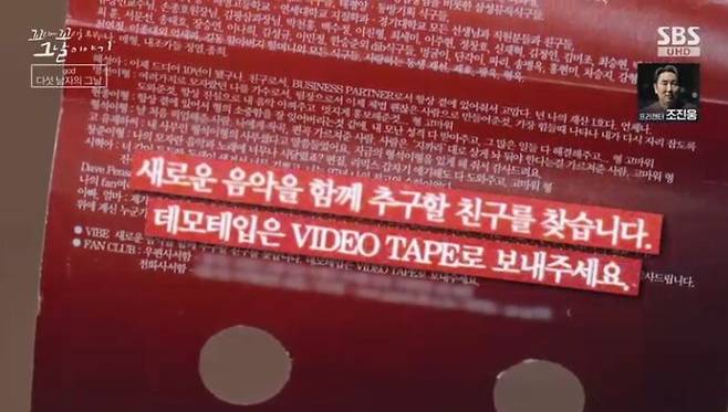 "새로운 음악을 함께 추구할 친구를 찾습니다. 데모테이프는 VIDEO TAPE로 보내주세요."