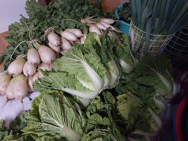 | ▲ 배추와 무 남편이 직접 농사지은 무와 배추 |