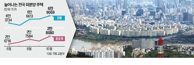 지난달 주택을 다 지어놓고도 주인을 찾지 못한 ‘악성 미분양’이 2만8000가구를 넘어섰다. 2013년 1월(2만8248가구) 후 12년9개월 만의 최대 규모다. 정부가 지방 미분양 해소를 위한 각종 대책을 내놨지만 시장에서 효과가 나타나지 않고 있다는 지적이 나온다. ‘10·15 부동산 대책’ 전 서울 아파트 거래는 매수 수요 급증으로 1년 전보다 176.0% 늘어났다.