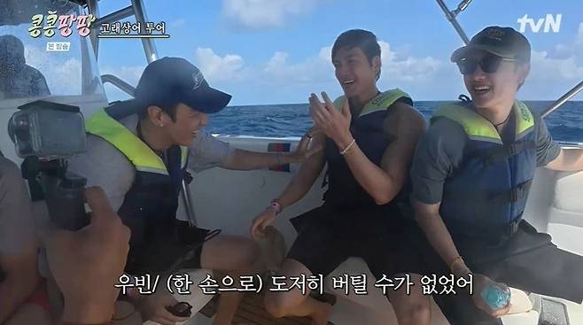 김우빈 수난시대…"제일 초라해 보여" 보트서 꽈당→뱃멀미까지 ('콩콩팡팡')