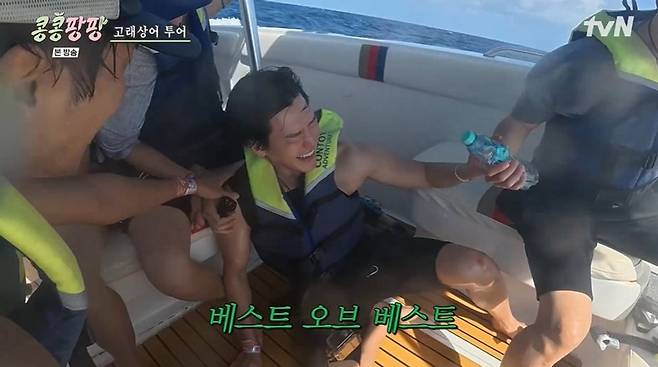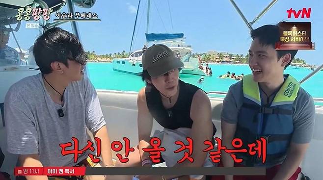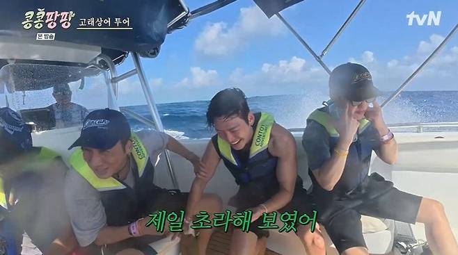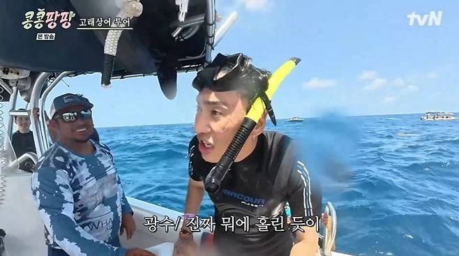 28일 방송된 tvN '콩콩팡팡(콩 심은 데 콩 나서 웃음팡 행복팡 해외탐방)' 7화에서는 고래상어 투어에 나선 이광수, 김우빈, 도경수의 모습이 공개됐다.