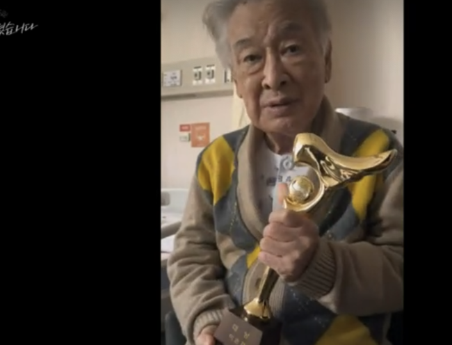 [OSEN=김수형 기자] MBC 다큐멘터리 추모특집에서 故이순재가 병상에서 트로피 들고 있는 모습이 그려졋다.