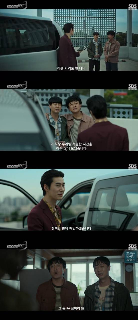 28일 방송된 SBS 금토드라마 '모범택시3' 3회에서는 중고차 사기를 당한 최주임(장혁진 분), 박주임(배유람)의 모습이 그려졌다.