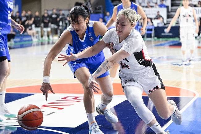 BNK는 28일 아산 이순신체육관에서 열린 BNK금융 2025-2026 여자프로농구 정규리그 원정 경기에서 우리은행을 54-45로 꺾었다.