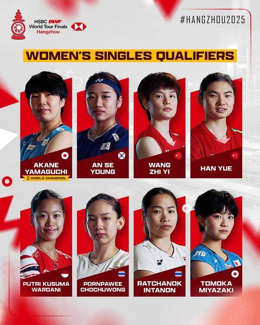 세계 랭킹 1위 안세영과 우승을 놓고 다툴 여자 단식 출전 선수들은 이미 확정됐다. 왕즈이와 한웨(이상 중국), 야마구치 아카네와 미야자키 도모카(이상 일본), 폼파위 초추옹과 랏차녹 인타논(이상 태국), 푸트리 쿠수마 와르다니(인도네시아)가 대회에 나선다.