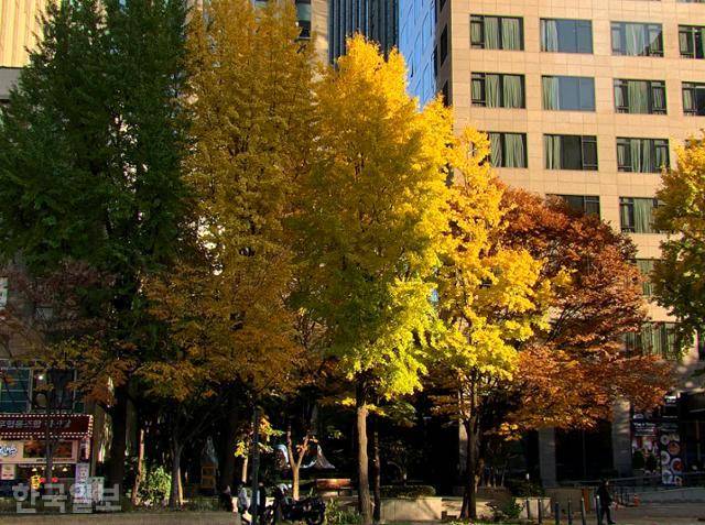 햇살을 듬뿍 받은 나무는 쨍하게 물들었지만, 빌딩 그늘에 가려진 나무는 아직 초록이 한창입니다. 올해도 한 걸음만 남겨두고 있습니다. 가는 시간은 아쉬워도 저마다의 시간이 켜켜이 쌓인 모습은 알록달록 보기 좋습니다.