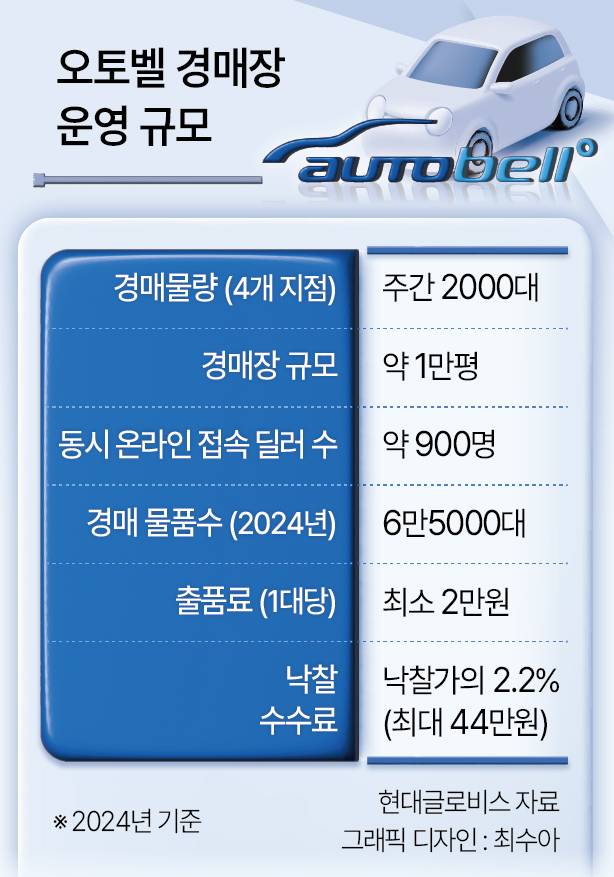 현대글로비스가 해당 시설을 통해 가져가는 수익은 출품료와 낙찰수수료 등을 통해 나온다. 오토벨 경매 사업은 출품료(1대당 2만~3만원), 낙찰 수수료(낙찰가의 2.2%, 최소 11만원~최대 44만원)를 수취하는 구조다.