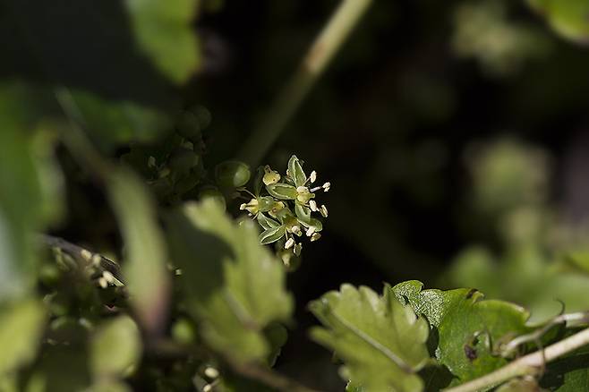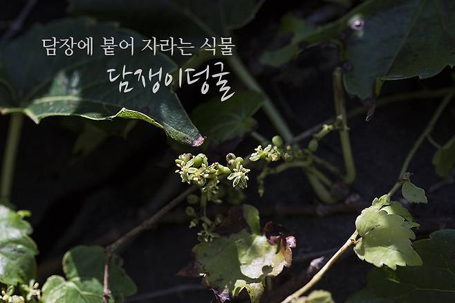 담쟁이덩굴은 줄기에서 돋는 공기뿌리의 끝이 작은 빨판처럼 생겨 어떤 벽이든 단단히 붙습니다. 7월이면 꽃을 피우지만, 꽃이 아주 작고 잎에 가려 잘 보이지 않아 관심을 가져야만 발견할 수 있습니다. 우리에게 너무 익숙한 식물이지만, 자세히 들여다보아야 비로소 꽃을 볼 수 있는 존재이기도 합니다.