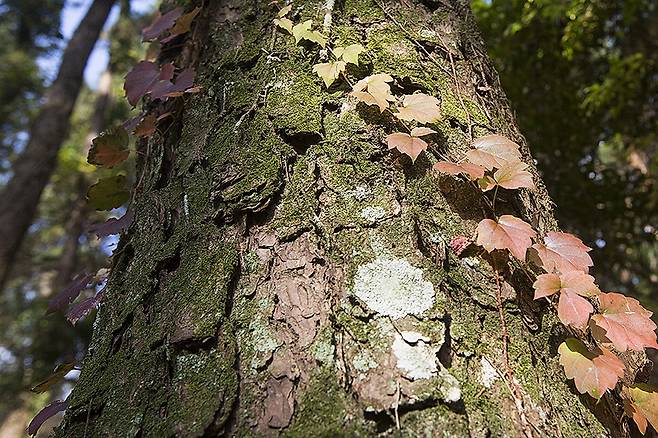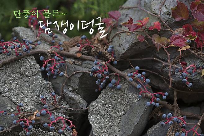 담쟁이덩굴은 돌담이나 바위, 나무줄기, 심지어 매끄러운 벽돌까지 가리지 않고 어떤 표면이든 단단히 붙어 오르는 덩굴성 식물입니다. 11월이 되면 잎이 선명한 붉은빛으로 물들어 깊어가는 계절을 알립니다.