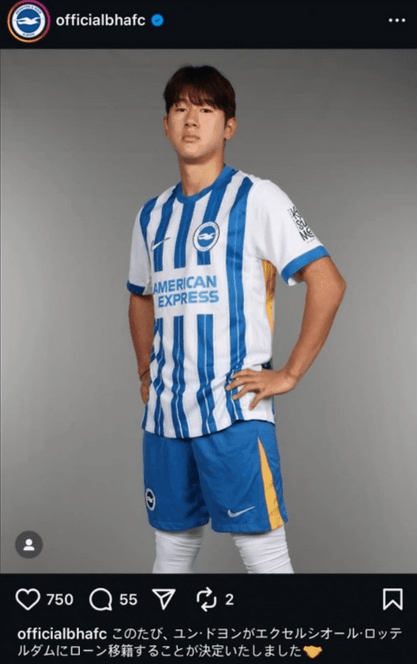 지난 7월 브라이턴은 윤도영의 임대 소식을 공식 채널로 알리려 했으나, 문제는 게시물이 영어도 한국어도 아닌 일본어로 작성되었다는 점이었다.