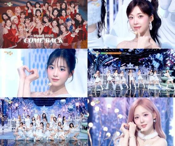 트리플에스 미소녀즈, '뮤직뱅크' 물들였다…'크리스마스 얼론' 눈길