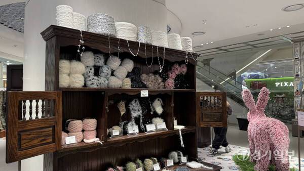 29일 찾은 성남시 판교 현대백화점의 한 뜨개질 팝업 매장에는 만찬 테마로 꾸며진 테이블 위로 색색의 뜨개실이 놓여 오가는 사람들의 이목을 끌었다. 가방, 목도리 등 기본적인 제품은 물론 케이크 모양의 파우치, 말 인형 등 독특한 모양의 제품이 소비자들의 발길을 붙잡았다.