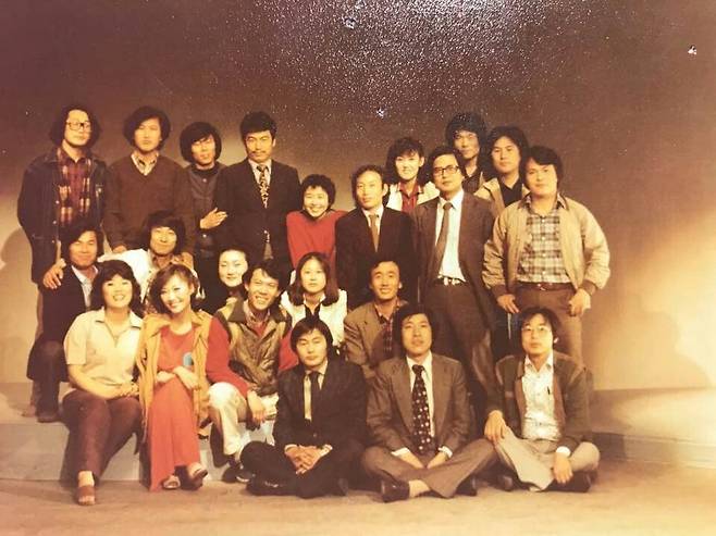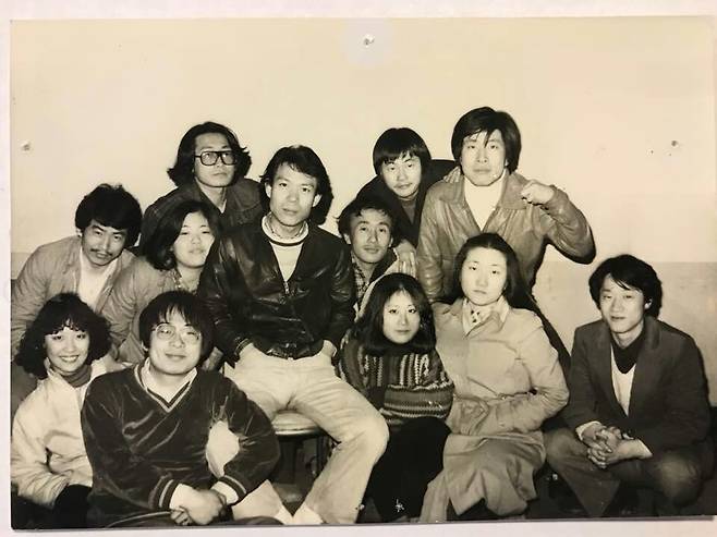 | ▲ 연극 '어둠의 자식들' (1981 4.4~12)공연을 마치고 잠바를 어깨에 걸친 이가 글쓴이(주인공 카수영애 역, 김경원) 이상우(연출가) 박인배(배우) 정한룡(대표) 박광수(영화감독) 김영동(작곡가) 박용수(배우) 엄경환(배우) 김추월(배우) 이문수(배우) 오종우(작가 치과의사)가 보인다. |
