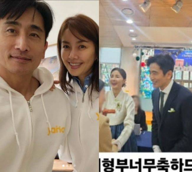 공개된 사진 속에는 검정 수트를 입은 차인표와 한복을 곱게 입은 신애라가 하객과 이야기를 나누고 있는 모습이 담겨 있다.