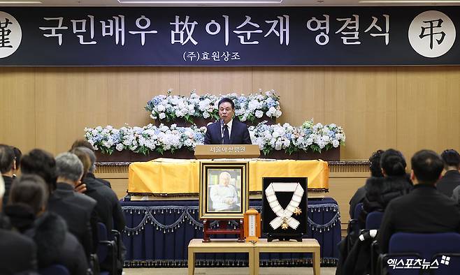 27일 오전 서울 송파구 서울아산병원 장례식장에서 故 이순재의 발인식이 엄수됐다. 영결식에는 정보석, 유동근, 정준하, 최수종 등 수많은 연예계 후배들이 참석해 마지막 길을 배웅했다.