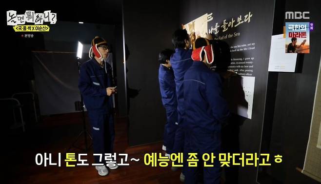 이날 유재석, 하하, 주우재, 허경환은 이순신 장군 특별전 전시 준비를 위해 투입됐다.