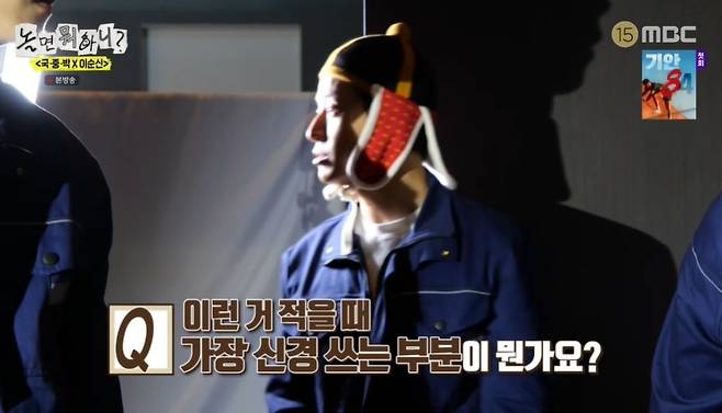 유재석은 시작 전부터 조선 장수들의 전투복 투구에서 착안한 모자에 마음을 빼앗겼고, 허경환과 함께 모자를 쓰고 작업했다. 이어 유재석이 니트 담요까지 걸치자 허경환은 "명품 여러 개 입은 느낌"이라고 밝혔다. 유재석은 허경환의 몸에 담요를 대보며 "넌 덮고 자도 되겠는데? 사이즈 딱이다"라며 적극 추천했다. 허경환은 거북선 미니어처를 들며 유재석에게 "사줘요. 후배 하나 못 사주나?"라고 요구하기도.
