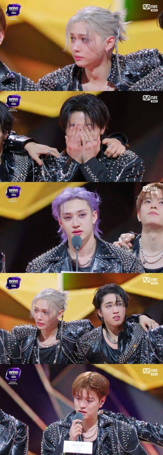 스트레이 키즈는 이날 대상 격인 VISA 올해의 앫범상을 수상하며 기쁨의 눈물을 흘렸다.