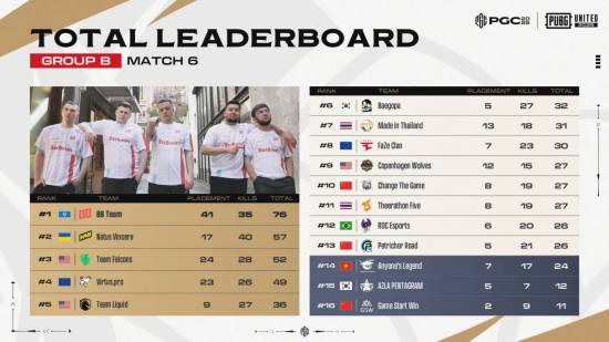 BB팀, 76점으로 그룹 스테이지 B조 1일 차 1위…배고파 TOP6 (PGC 2025) [종합]
