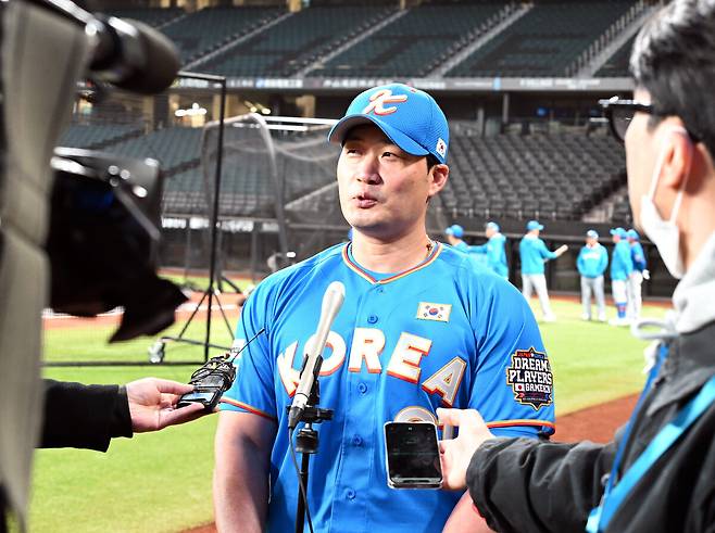 그는 "일주일에 한 번씩 감을 유지하고, 2주에 한 번씩 경기를 했기 때문에 선배님들보다 경기 감각이 있을 것 같다"며 "(정)근우, (이)택근이 형, (박)용택이 형과 (김)태균이도 다른 프로그램 하고 있지만, 간간이 경기했던 친구들이 좋은 모습을 보여야 팀이 이길 수 있다"고 말했다.