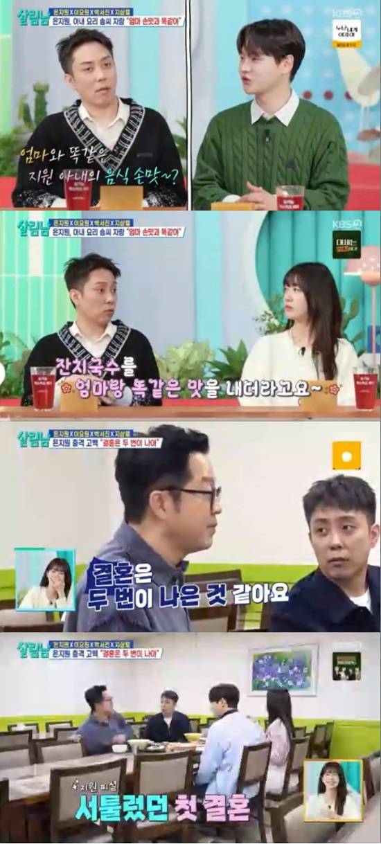 은지원은 잔치국수를 좋아하는데 아내가 어머니랑 거의 비슷하게 똑같은 맛을 낸다고 말했다.