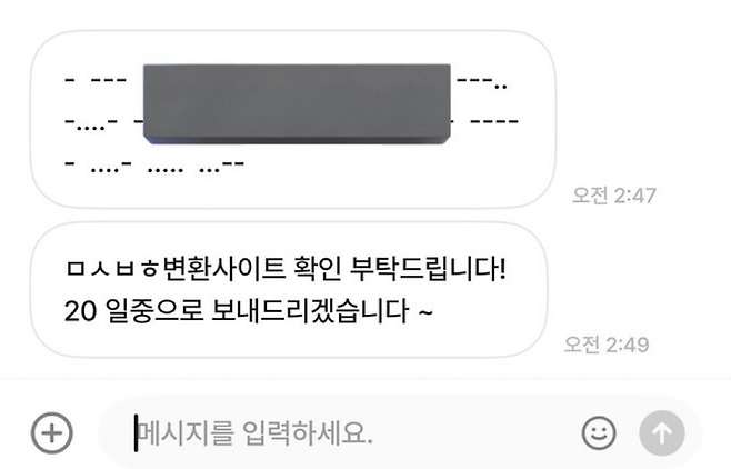 30일 국민일보 취재를 종합하면 각종 온라인 커뮤니티에서는 수수료 회피를 위한 다양한 ‘꼼수 노하우’가 활발히 공유되고 있었다. 계좌번호를 점(.)과 대시(-)로만 이뤄진 모스부호로 보내며 “변환사이트로 암호를 변환해달라”는 요청이 대표적이다.