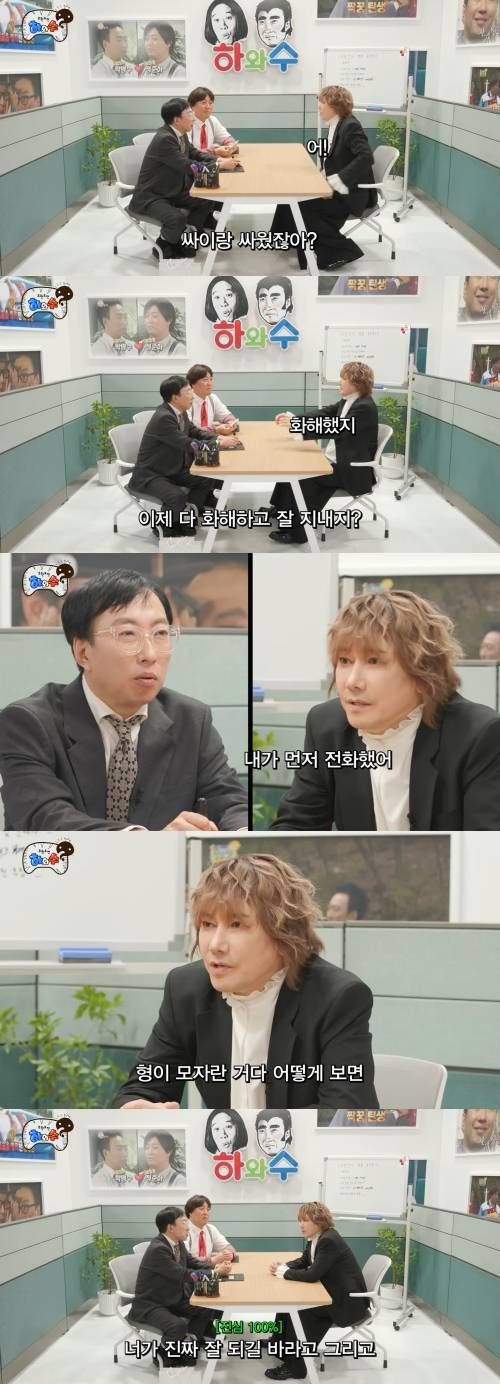 김장훈은 "싸운거 맞고, 화해했지. 내가 먼저 전화했다"고 밝혔고, 박명수는 "뭐래 그러니까 재상이가?"라며 궁금했다. 김장훈은 "전화해서 재상이(싸이)한테 얘기하니까 고맙다고 그랬다. 옛날에, 아주 옛날에 전화해서 '재상아 형이 다 모자란 거다. 난 너가 진짜 잘 되길 바라고, 그리고 언젠가 소주 한잔하자'라고 했다. 그렇다고 자주 연락을 하거나 뭐 보진 않는다"고 털어놨다.