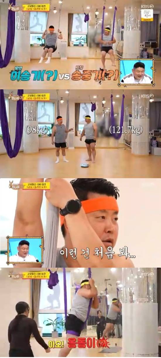 이날 정호영과 황희태는 건강 관리를 위해 플라잉 요가 배우기에 나섰다.