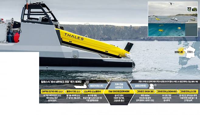 프랑스 서부 브르타뉴반도 소도시인 브레스트는 프랑스 해군의 ‘눈’과 ‘귀’를 동시에 길러낸다. 프랑스 최대 방산기업인 탈레스가 1963년부터 터를 잡았다. 프랑스 정부가 러시아의 위협에 대응하기 위해 ‘전시 경제’를 선언하면서 지금 이곳은 프랑스 해상 방위의 심장부이자 군(軍)과 산업이 맞물린 거대한 실험장으로 거듭나고 있다. 영국과 공동 개발 중인 ‘자율 해상 기뢰대응체계(MMCM)’는 미국·중국조차 아직 실현하지 못한 세계 최초의 기술이다. 지난달 현지에서 만난 에마뉘엘 미쇼 탈레스 잠수함·수상함 담당 부사장은 “우리가 만드는 것은 단순 무인 장비가 아니라 스스로 감지하고 판단하는 전장의 ‘신경망’”이라며 “각 센서를 하나의 지능형 체계로 통합해 인간의 개입 없이도 작동하는 방위 플랫폼을 구현하는 것이 목표”라고 설명했다.