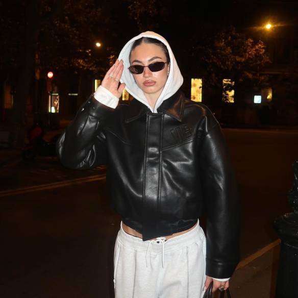 톤온톤 룩의 정석을 찾고 있다면 캣츠아이 윤채의 스타일링을 참고하세요. 선명한 레드 후드 집업 위에 버건디 레더 자켓을 매치한 룩은 색감의 영역에서 완벽한 조화를 보여줍니다. 레드 계열이 가진 에너지에 버건디의 깊이가 더해지며 강렬함이 살아나는 동시에 톤이 맞아 떨어지는 조합 덕분에 시각적 안정을 확보하죠. 톤만 잘 맞춰도 전체 룩의 완성도가 올라가기 때문에 누구나 쉽게 따라 하기 좋은 방식. ‘심플하지만 세련된’ 후디 스타일링의 대표 사례입니다.