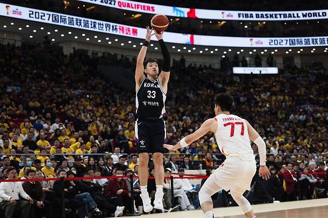 대한민국과 중국의 2027 FIBA(국제농구연맹) 농구 월드컵 아시아 예선 1라운드 B조 1차전에서 스포트라이트를 독차지한 건 이현중이었다. 이현중은 월드컵 예선 역대 1경기 최다인 9개의 3점슛을 터뜨리는 등 33점을 기록하며 한국의 80-76 승리에 앞장섰다.
