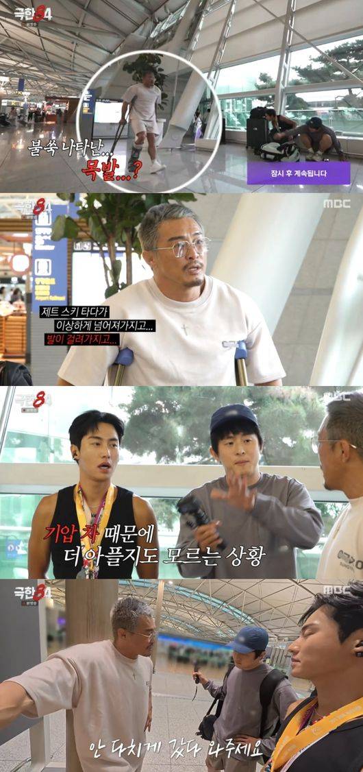 이날 기안84는 극한 크루로 추성훈과 권화운이 합류했다. 그러나 대망의 출국날, 추성훈은 목발을 짚고 나타나 모두를 깜짝 놀라게 했다. 그는 “어제 촬영하다가 뼈가 두 개 부러졌다. 제트 스키 타다가 이상하게 넘어져서 걸려가지고”라고 밝혔다.