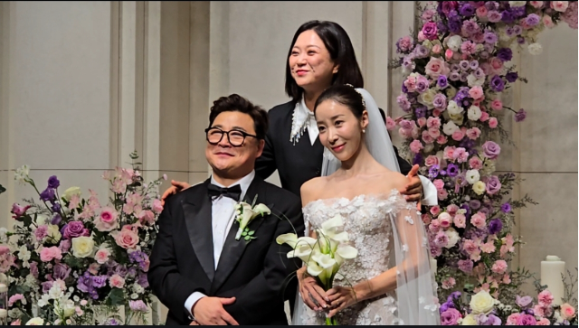 그리고 두 사람 사이, '가상 부부'였던 김숙이 함께 서서 흐뭇한 표정으로 두 사람의 결혼을 축하하고 있다.