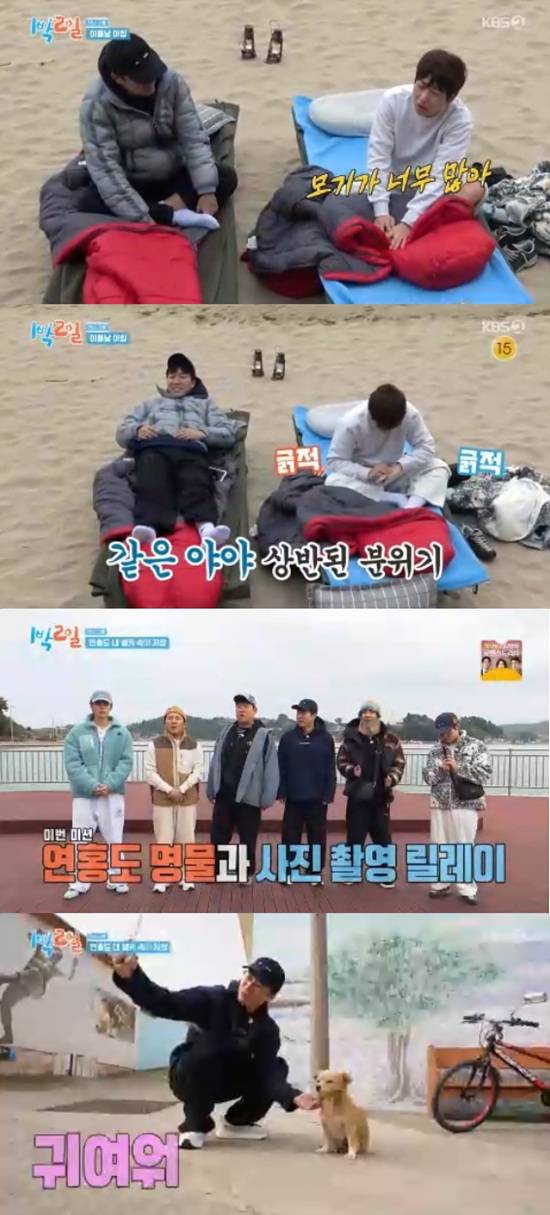 김종민은 연홍도 강아지 방울이를 만나 셀카를 찍었고 문세윤은 고양이와 셀카를 찍었다.