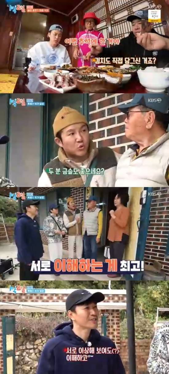 신혼인 김종민과 조세호는 금슬 좋은 비결에 대해 물어봤다. 어르신은 서로 이해하는 게 중요하다고 조언했다.
