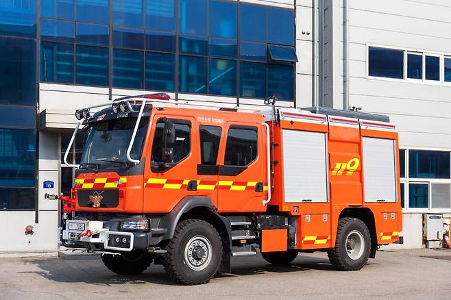 볼보트럭코리아가 경기도 화성시에 위치한 소방특장업체 에프원텍과 협력해 볼보 FL 4x4 험지용 트럭을 기반으로 맞춤 제작한 국내 1호 험지용 소방펌프차를 출고했다고 1일 밝혔다.