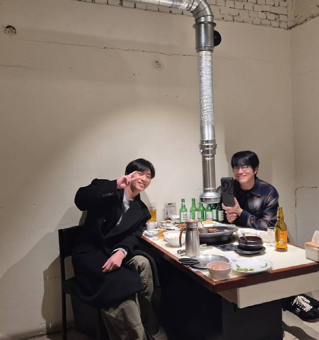 함께 공개된 사진에는 성시경과 박서준이 한 식당에서 다정하게 어깨동무를 한 채 인증샷을 남기는 모습이 담겨 있다. 두 사람의 편안한 분위기와 훈훈한 케미가 눈길을 끌며, 식탁 위 소주병 여러 병이 더해진 '친구 같은' 현장의 생생함도 돋보인다. 술기운이 오른 듯 발그레한 두 사람의 표정이 미소를 자아낸다.