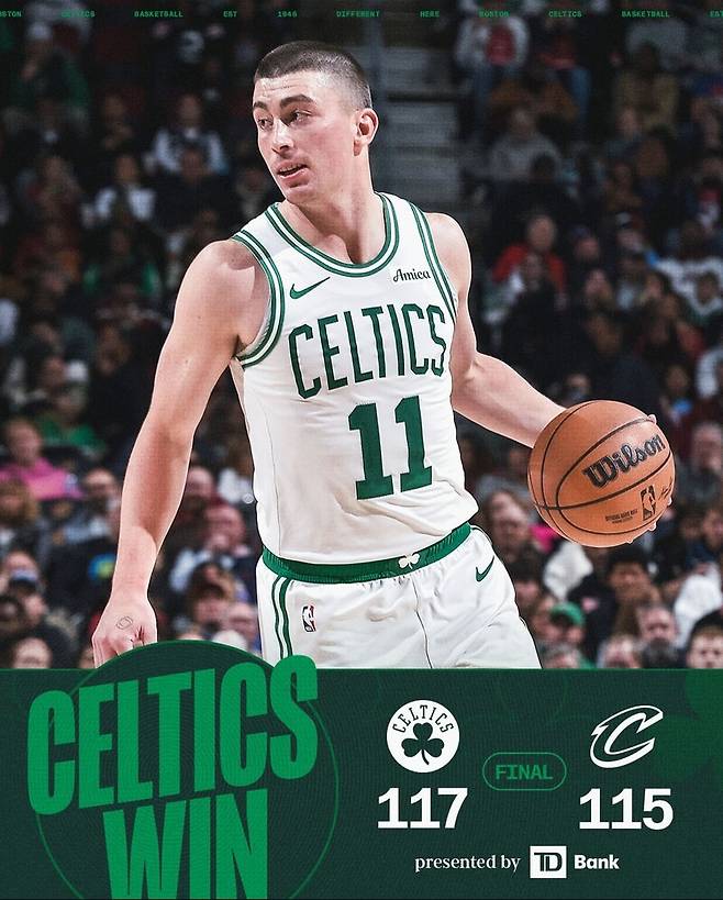 보스턴 셀틱스는 12월 1일(한국시간) 클리블랜드에 위치한 로켓 아레나에서 열린 2025~2026 NBA 정규리그에서 클리블랜드 캐벌리어스를 117-115로 꺾었다. 11승 9패를 기록했다. 5할 승률 이상을 계속 유지했다.