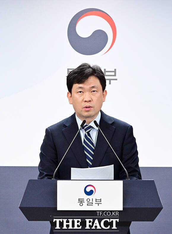 [더팩트ㅣ임영무 기자] 윤민호 통일부 대변인이 1일 오전 서울 종로구 정부서울청사에서 현안 관련 정례브리핑을 하고 있다.