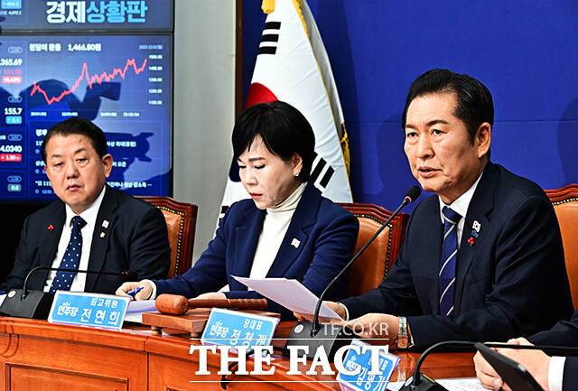 정 대표는 이날 최고위원회의에서 "내년도 예산안 처리 시한이 하루 앞으로 다가왔다"며 "이번 예산안은 이재명 정부의 첫 예산안으로 대민의 회복과 성장을 이뤄낼 마중물"이라고 말했다.