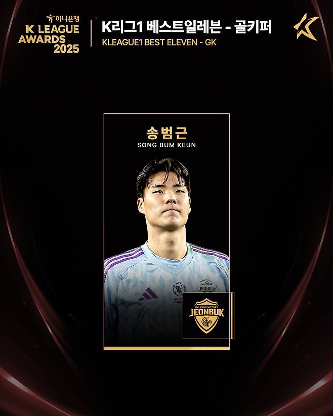 전북 수문장 송범근이 개인 통산 처음으로 베스트11에 선정됐다. 송범근은 올 시즌 전 경기에 나서 단 32실점만 허용하며 견고한 방어를 보여줬다. 또한 무실점 경기 15회를 펼치며 전북의 팀 최소 실점(32실점) 기록에 이바지했다.