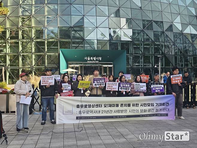 | ▲ 지난 11월 12일 오전 서울시청 광장에서 진행된 '오! 재미동을 지키고 싶은 사람들' 시민모임의 기자회견. |