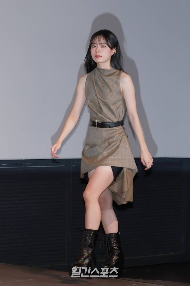 배우 이재인이 1일 오후 서울 송파구 롯데시네마 월드타워점에서 열린 영화 '콘크리트 마켓' 언론배급시사회 및 기자간담회에 참석하고 있다.