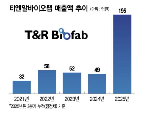 1일 티앤알바이오팹에 따르면 이 회사는 3분기 누적 195억원 매출액을 기록했다. 전년 동기 대비 430% 이상 증가한 수치다. 지난해 연간 매출액이 50억원 수준이었던 점을 감안하면 고무적 상승 폭이다.