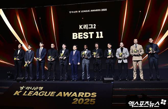 시상식 진행에 앞서 2025시즌 K리그1, 2에서 포지션별로 가장 뛰어난 활약을 펼친 22명의 선수들이 공개됐다. 10번째 K리그1 우승(라데시마)을 달성한 전북 현대와 K리그2 우승을 차지하며 한 시즌 만에 승격에 성공한 인천 유나이티드 선수들이 베스트 일레븐을 휩쓸었다.
