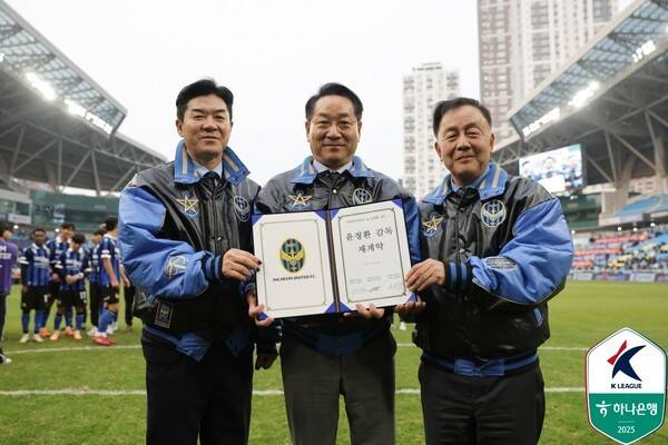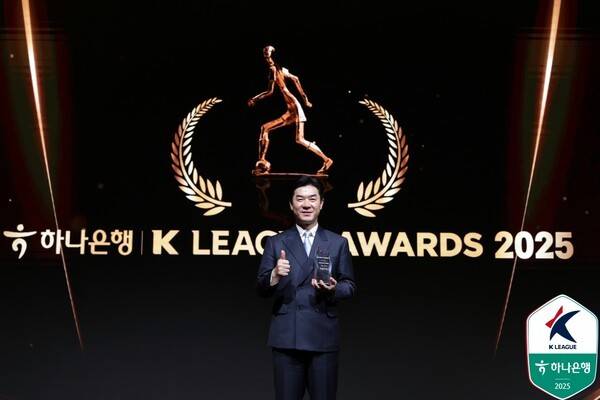 윤정환 감독은 1일 오후 3시 서울 서대문구 소재 스위스그랜드호텔에서 열린 하나은행 K리그 2025 대상 시상식에서 K리그2 감독상을 수상했다. 윤정환 감독이 이끄는 인천은 올 시즌 39경기 23승 9무 7패(승점 78)로 우승을 차지하며 강등 1년 만에 K리그 승격을 확정 지었다.