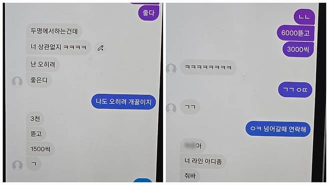 또 다른 날 이번엔 누군 안되고, 누군 된다며 범행할 사람을 찾더니 3천만원을 뜯자 6천만원을 뜯자는 식의 대화를 나눕니다.