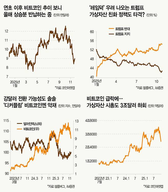 정치적 요인도 병존한다. 지난해부터 시작된 가상자산 강세장 핵심 요인은 ‘트럼프 효과’였다. 트럼프 대통령은 “미국을 ‘가상자산의 수도’로 만들겠다”고 공언한 후 가상자산 법·제도를 수립해왔다. 대표적인 게 내년 시행을 앞둔 지니어스 액트(스테이블코인 법안)다. 문제는 최근 트럼프 대통령 취임 1년 만에 ‘레임덕(조기 권력 누수)’ 우려를 마주했단 점이다.